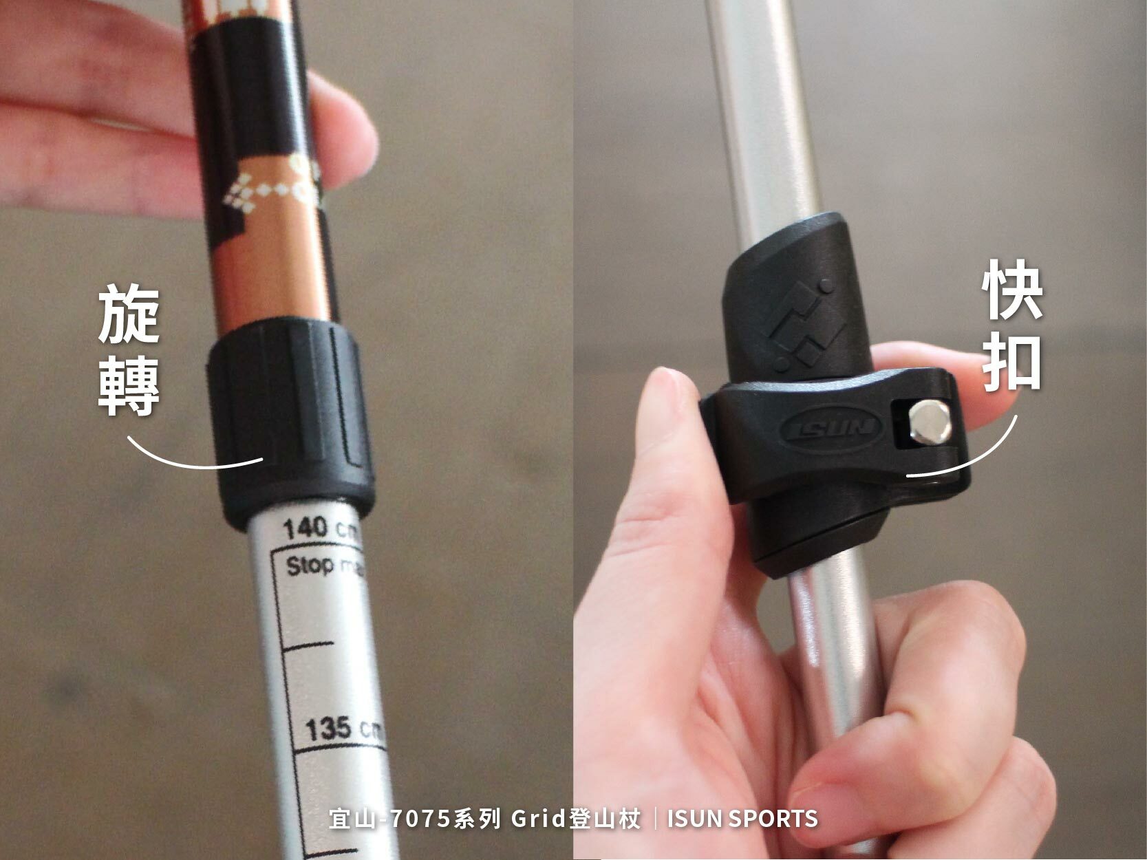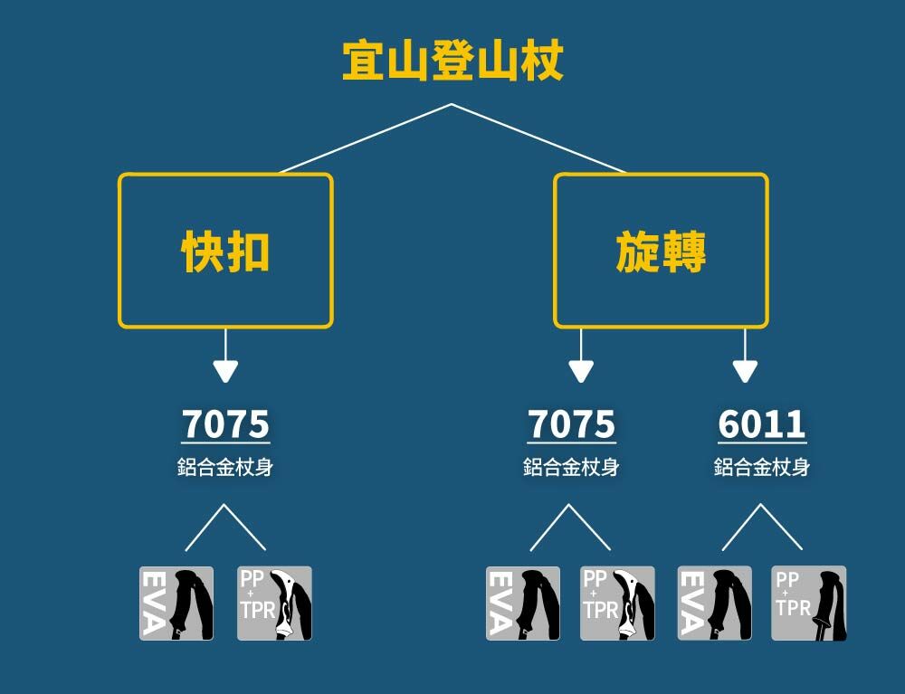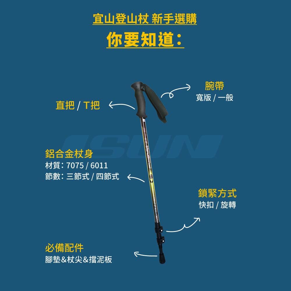 宜山登山杖提供標準三節、新款四節式設計