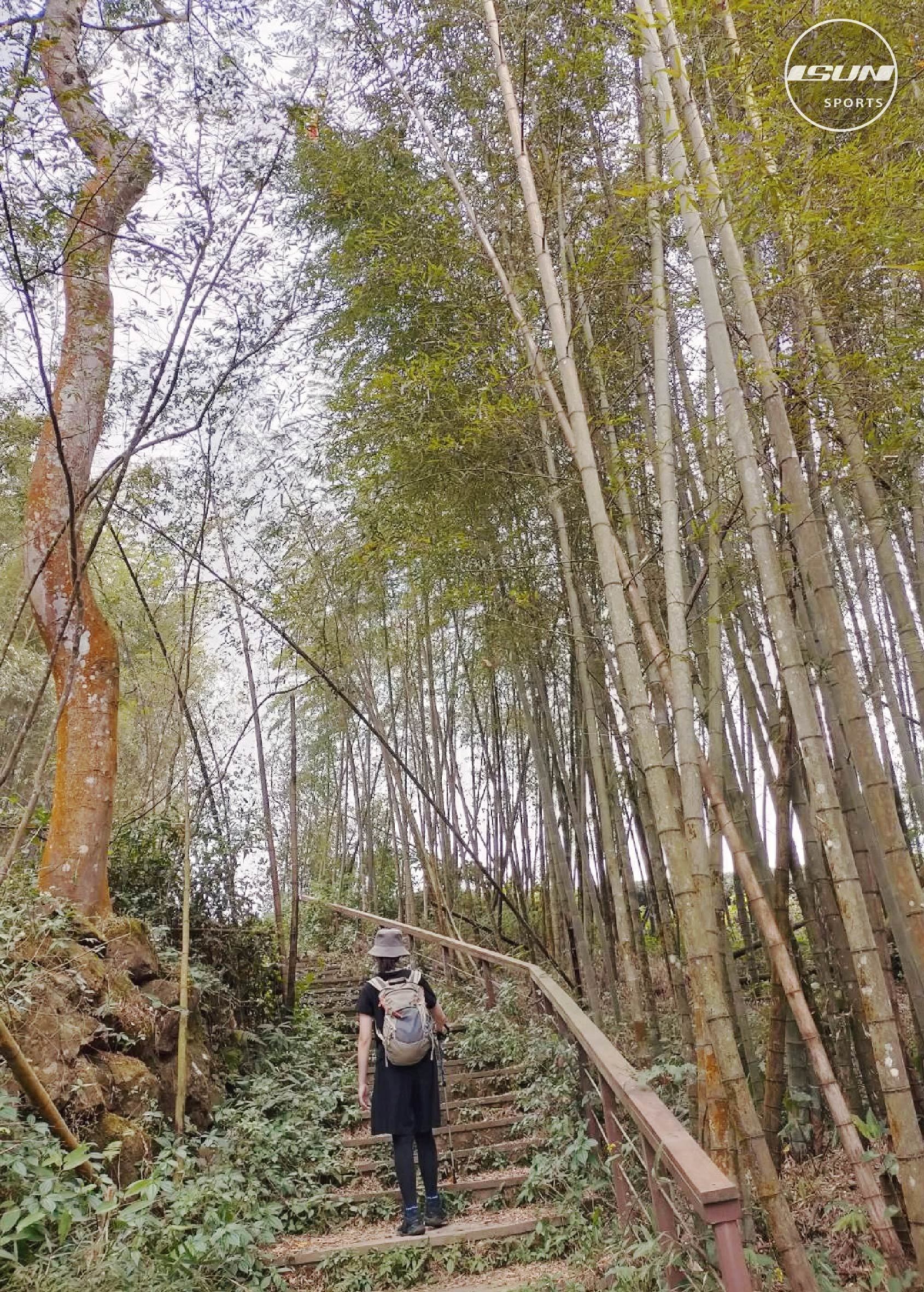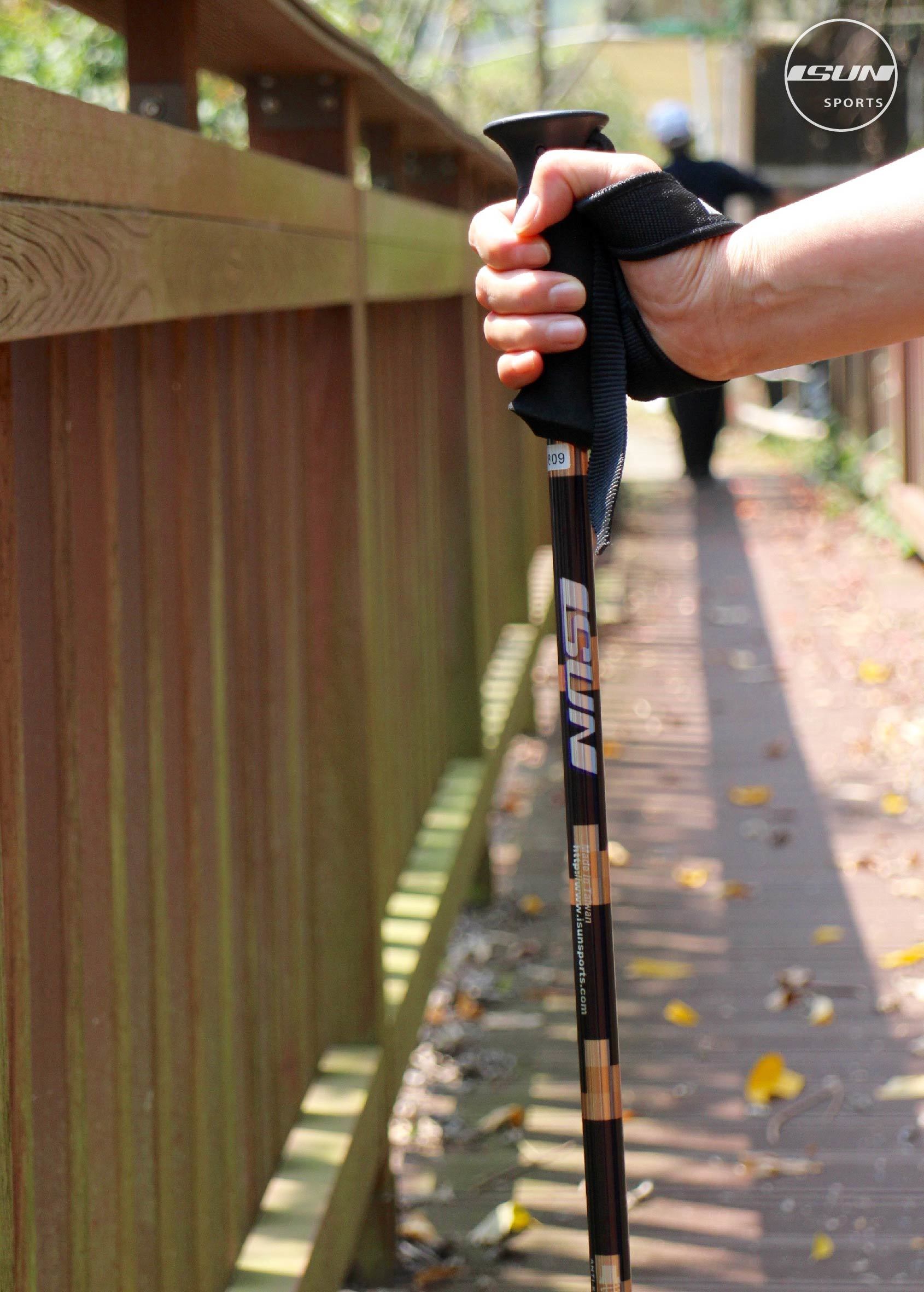 當天挑了ISUN-Grid登山杖來陪走這趟小百岳健行。走郊山階梯步道必備登山杖,總是有感而發的是:不管一路陡上或者緩上坡都能幫助爬階梯、持續下坡時也能幫助支撐穩定。善用登山杖有效緩衝,避免下坡時對膝蓋產生過多壓力。