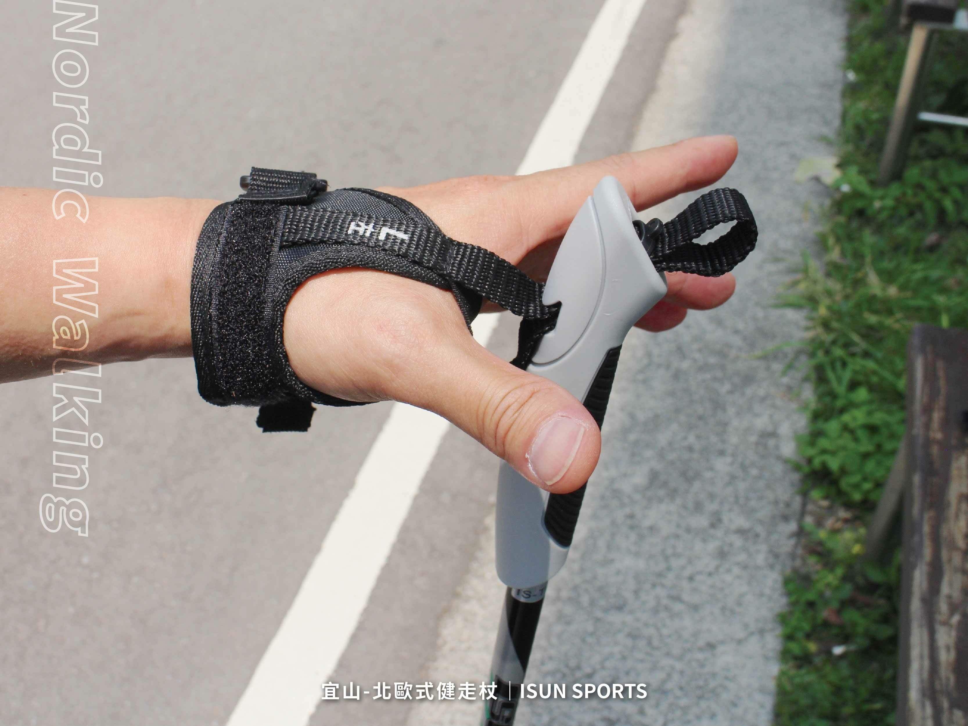 正確穿戴手腕帶完成固定,鬆手也不會輕易與杖脫落