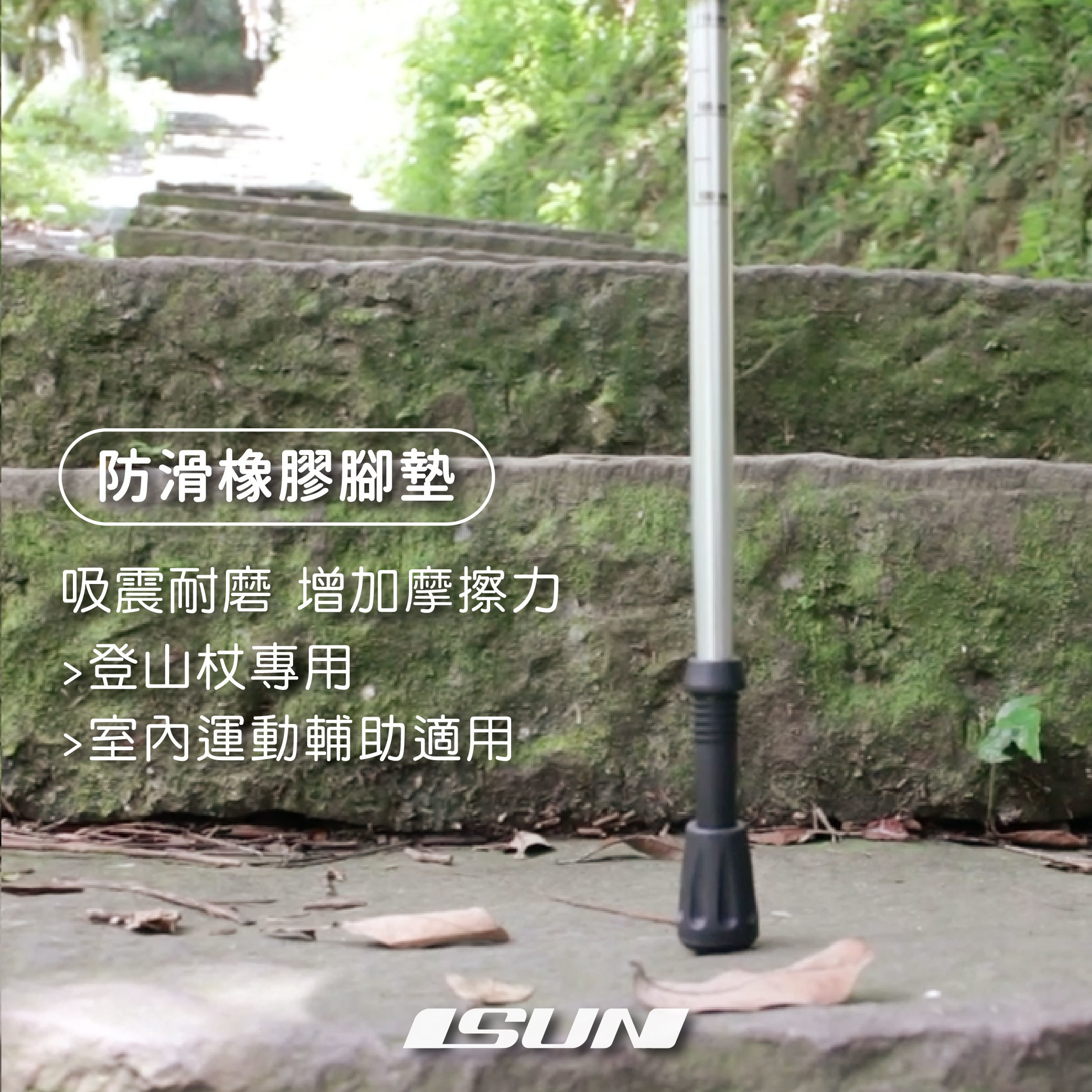【特殊鞋型腳墊】:「鞋型」造型更有效進行北歐健走運動,透過斜面腳墊助於雙手持杖擺動向前推進。採用防滑吸震的橡膠材質,適用水泥地、柏油路等,降低金屬杖尖磨損,提升彈力及摩擦力。